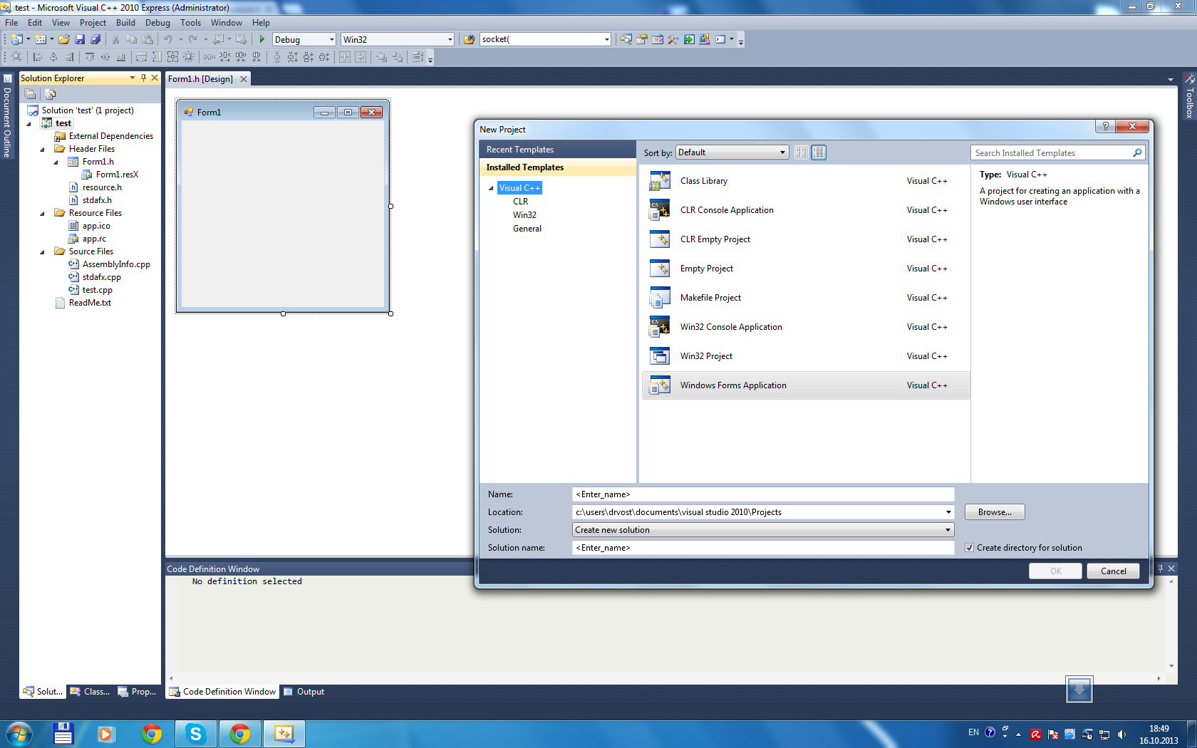 VS C++ Express 2013 не містить візуального редактора, якщо не помиляюсь. Знаю, що він є в C#, але не в C++. Потрібно Professional чи щось таке.