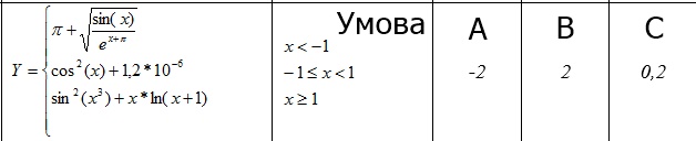 if (x>=-1) and (x<1) then y:=sqr(cos(x))+(1.2*exp(ln(10)*(-1/6)));