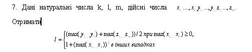 7. Дані натуральні числа k, l, m, дійсні числа    Отримати...