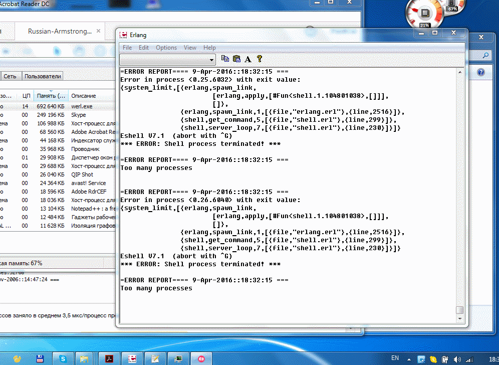 тот момент коли такий рукожоп, що навіть Erlang у руках - глючить і робить щось таке, чого робити наче не повинен  :D (він по концепції- або працювати, або упасти-встати-працювати, а тут...)