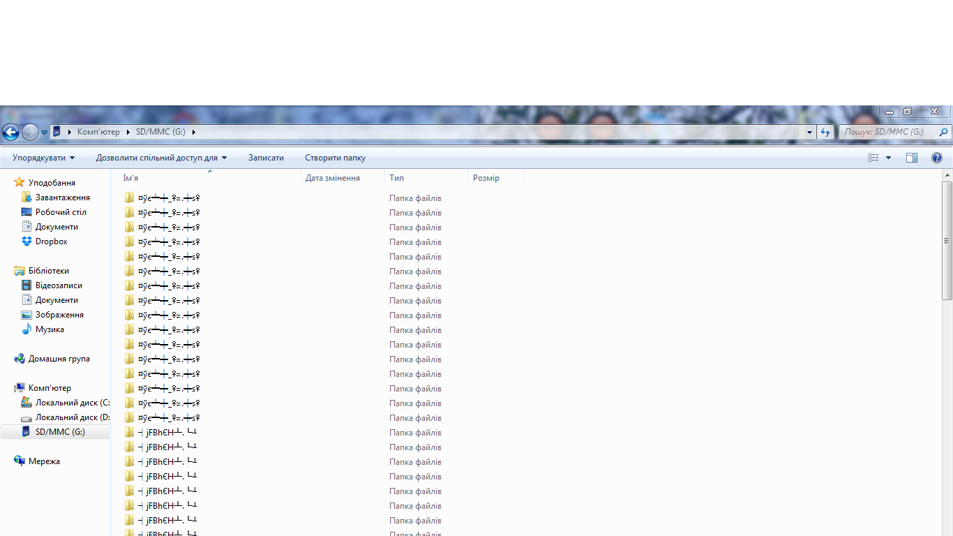 Коли скидаю музику, на половині процес зупиняється. Витягую флешку, потім знову підключаю до компа, і всі файли перейменовуються на китайську мову. Музики немає, натомість куча папок дивних (дивись малюнок )