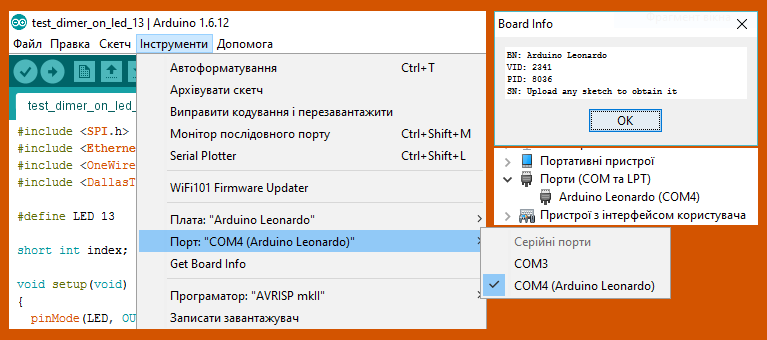 Всім привіт. Вчора закидав новий скетч на Arduino Leonardo і під час вивантаження з якогось дива віндовс надумав в цей самий час оновити драйвер (точніше я тикнув плату в не в той порт що завжди IDE знайшла плату я клікнув "Вивантажити" і під час цього вінда знайшла "новий пристрій" і почала встановлювати дрова)... в результаті тепер плату заглючило по повній... скетч не завантажило, тобто він не працює бо контроль роботи йшов по діоду 13 який після кожного нового циклу програми давав імпульс... думав проблема вінди, але зараз пересів за інший ПК проблема та сама.