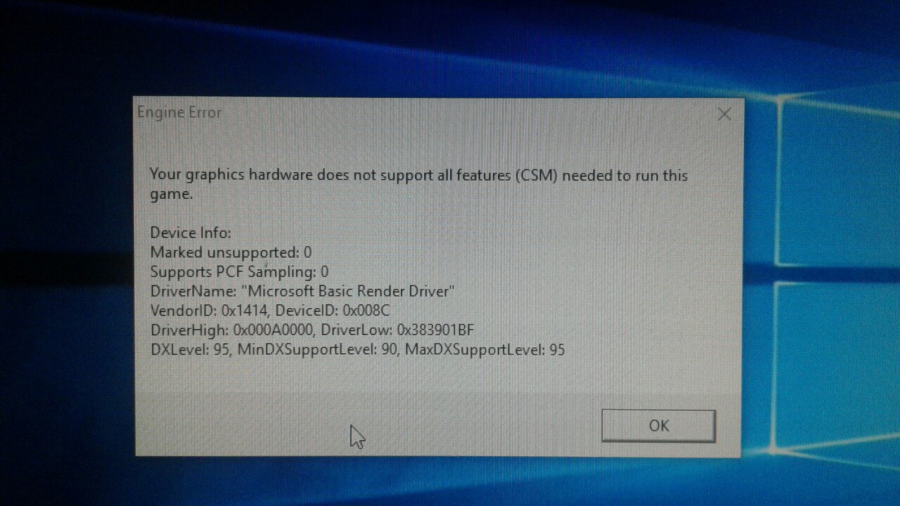 запускаю cs go і виходить таке вікно. на windows xp не було жодних проблем. поставив десятку і от