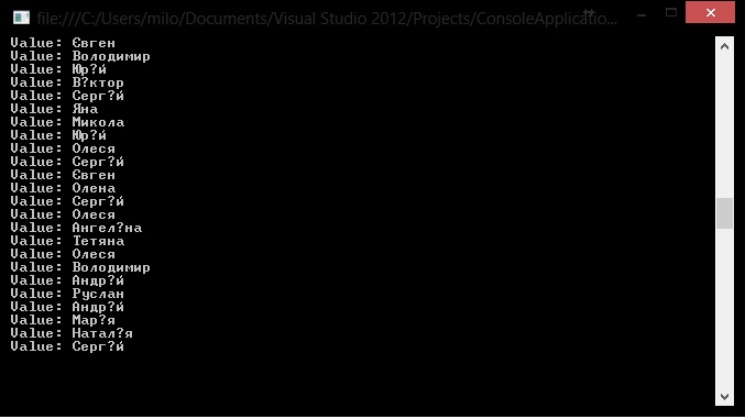 Усім привіт , почав вчити .Net Прошу допомогти у вирішенні проблемки. Найшов в неті нижче вказаний код, але при компіляції він показує тільки значення поля 0 або 1 або 2 в задежності від цифри в дужках  object dataValue = reader.GetValue(2);