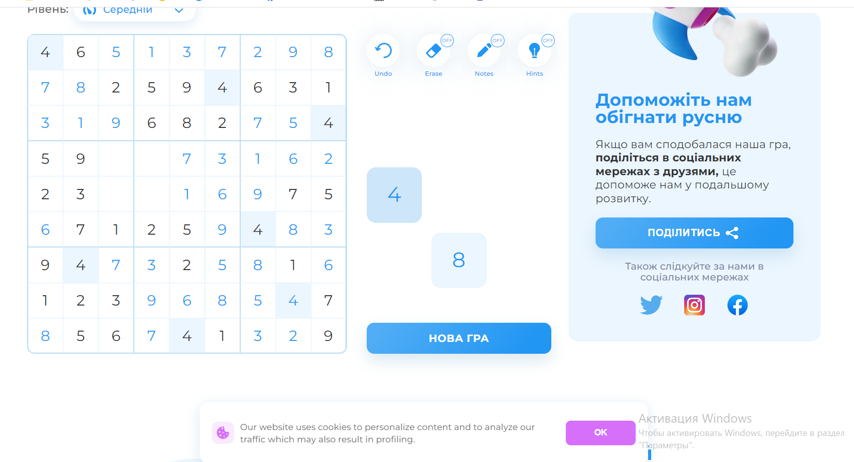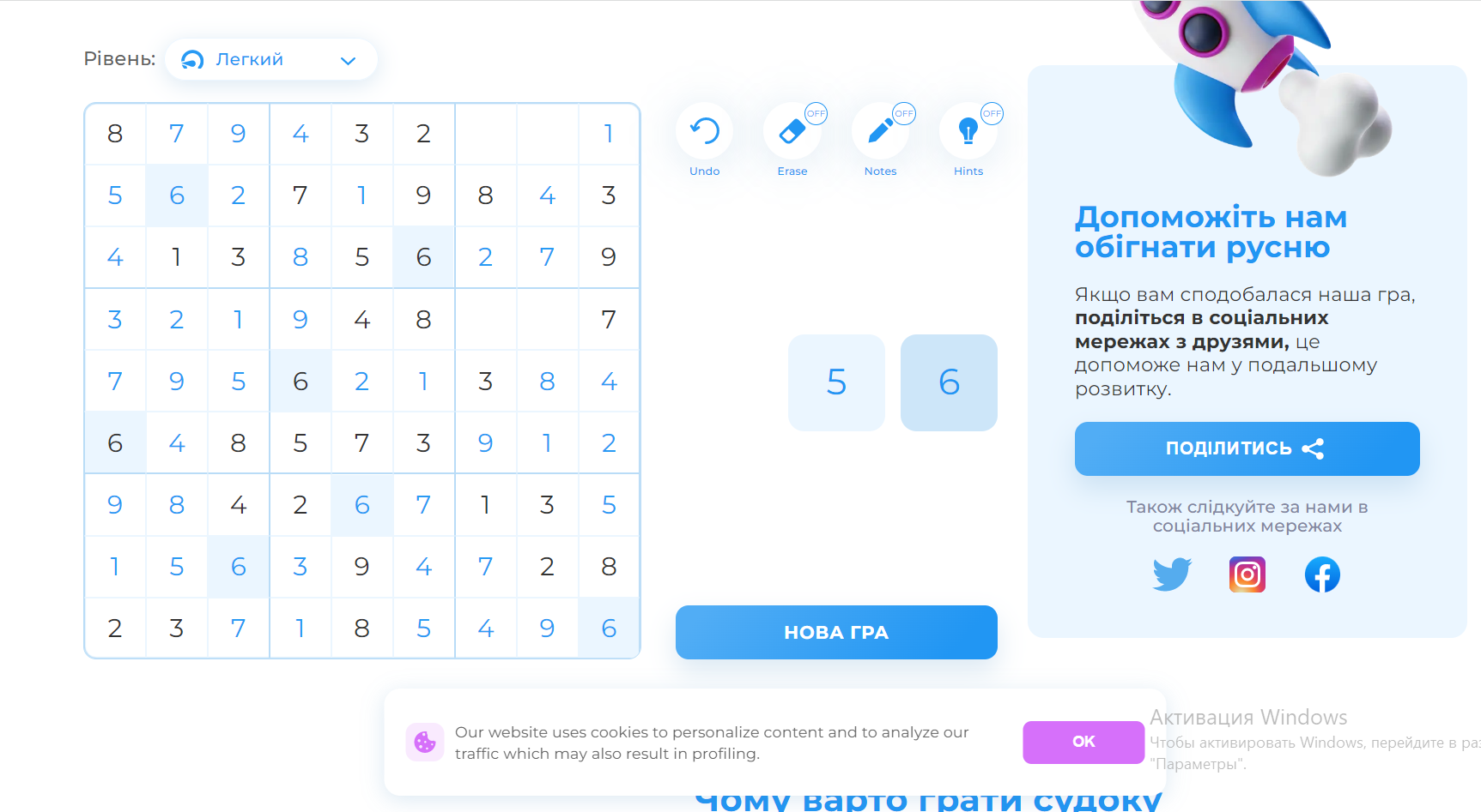 Наразі готова веб версія гри Судоку, але основний проект - буде мобільна версія під iOS & Android.