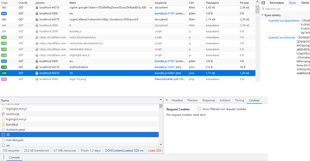 Я роблю сайт з зовнішньою авторизацією від Гугла. І ось, авторизація закінчується успішно і оглядач шле на сервер кукі з першим запитом, власне, редіректом. А ось наступні запити вже йдуть без реп'яшків якщо в Chrome, а в Firefox все добре - з реп'яшками. Що це може бути?