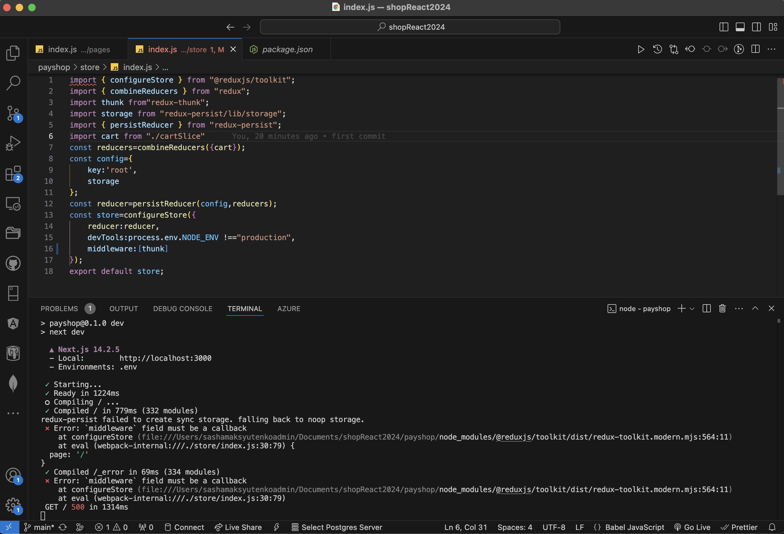 Хто знає як виправити дану помилку у файлі index.js у папці store?