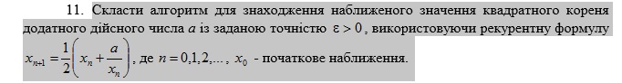 Тема: Обчислення квадратного кореня за рекурентною формулою