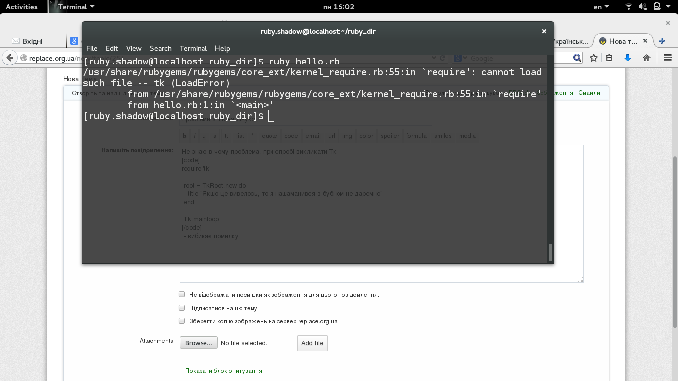 Український форум програмістів → Ruby → Проблеми з Tk на лінуксі