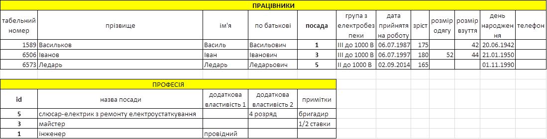 І ось поле професія змушує задуматися: начальник, зав. складу, інженер (провідний інженер, інженер I, інженер II, інженер), електромонтер (від III до VI розряду). Тобто є професії, які мають додаткові "вказівки". Думав робити окрему таблицю ПРОФЕСІЇ, але ж в інженерів розрядів не має, за те є категорії, а зав скад - просто зав склад.. Підкажіть будь-ласка, як краще зробити.